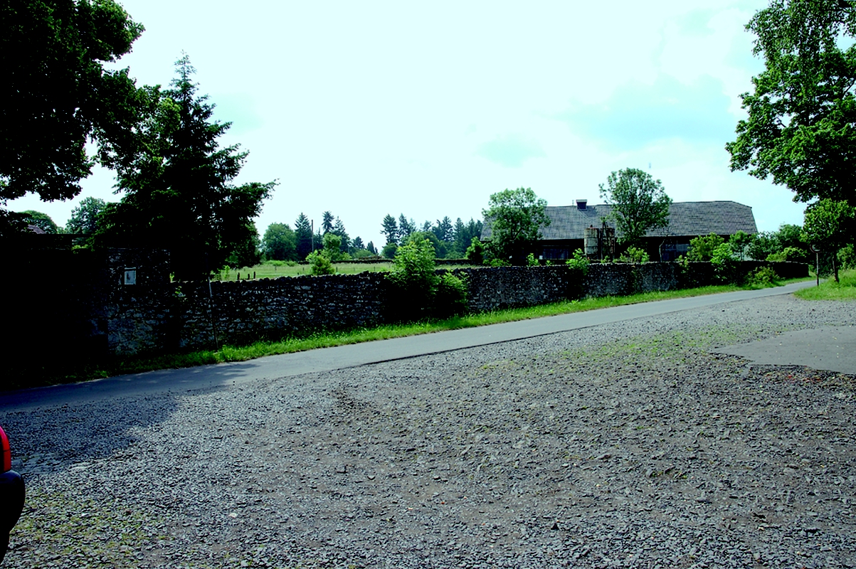 Der ehemalige Lustgarten schließt den Schlossbereich nach Westen ab. Erhalten blieb nur die das große, trapezförmige Gelände ganz umfassende Mauer.