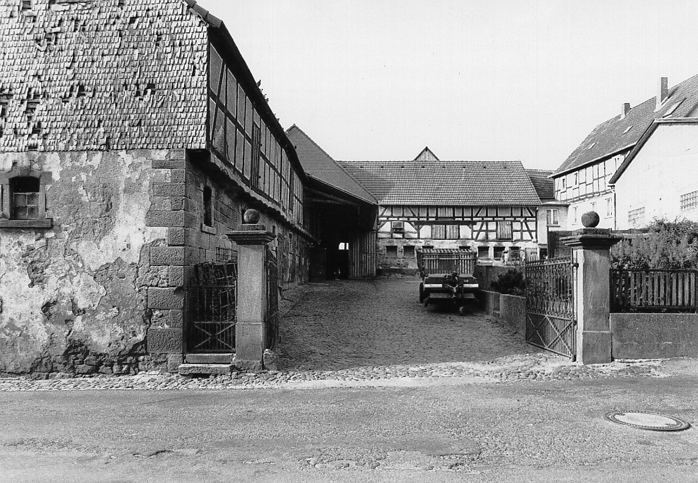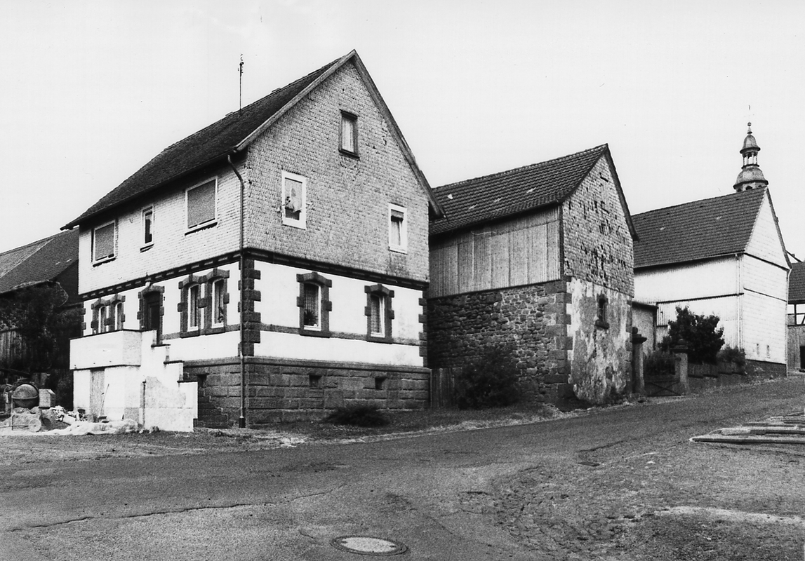 Der erhaltene Bestand an Wohn- und Wirtschaftsgebäuden umfaßt eine Bauzeit vom Beginn des 18.Jhs. bis ins erste Jahrzehnt des 20. Jhs. Mehrere Bauten des ausgehenden 19. Jhs. bis frühen 20. Jhs. sind durch Mansarddächer abgeschlossen (Allendorfer Straße 2 und 3, Alte Kreisstraße 1); an etlichen Gebäuden hat sich darüberhinaus die Holzschindelverkleidung erhalten. Als künstlerische Ausgestaltung von Fachwerk ist die Schnitzverzierung an Rähm und Eckstielen zu nennen, wie sie an den Gebäuden Unter der Kirche 2 und 3 sowie an dem im Erdgeschoß massiv erneuerten Wohnhaus Allendorfer Straße 7 angebracht ist. Besondere Erwähnung verdient die Kratzputzausstattung der Hoffassaden von Stall und Scheune bei Forsthausstraße 12 und die auf 1910 datierten sandsteinernen Torpfosten der Hofanlage Unter der Kirche 8. Im Süden der Gesamtanlage setzen aufgrund ihrer Höhenentwicklung das in historisierendem Fachwerk auf massivem Unterbau errichtete Schulhaus und das gleichfalls im ersten Jahrzehnt des 20. Jhs. erbaute Transformatorhäuschen einen abschließenden Akzent.