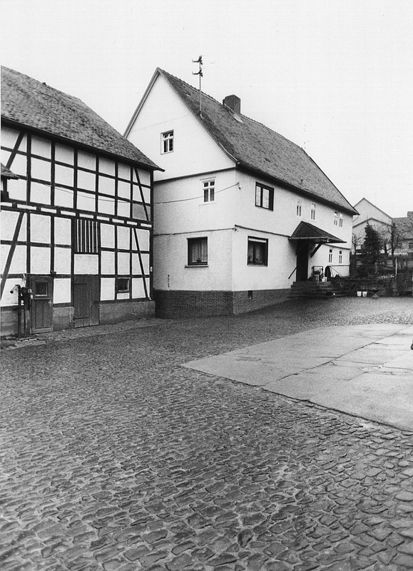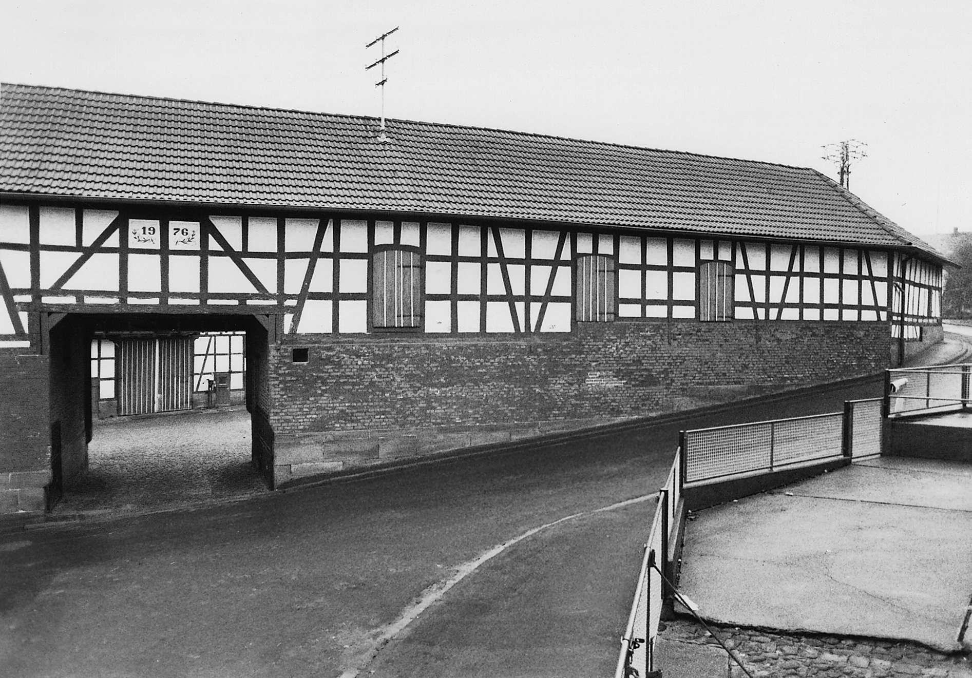 Geschlossene Dreiseithofanlage am nordöstlichen Rand des Ortskernes. Im hinteren Bereich des Hofes als Teil des Scheunenkranzes traufständiges Wohnhaus. Unter dem Putz Rähmbau aus dem späten 18. Jh. mit Geschoßversatz und einfachen Streben, Erdgeschoß im Bereich des früheren Stalls massiv erneuert. Zur Straße Torbau als langgestrecktes Wirtschaftsgebäude mit qualitätvollem, massivem Untergeschoß aus dem 19. Jh. Hof ist wichtiges städtebauliches Element in dem zum Homberg ansteigenden Straßenraum.