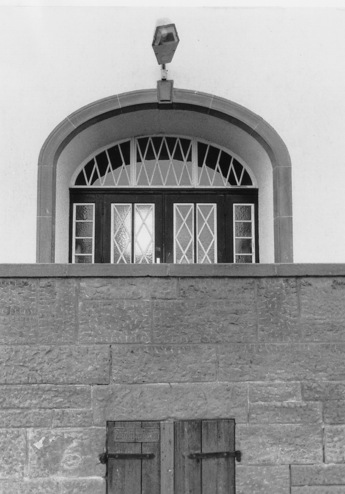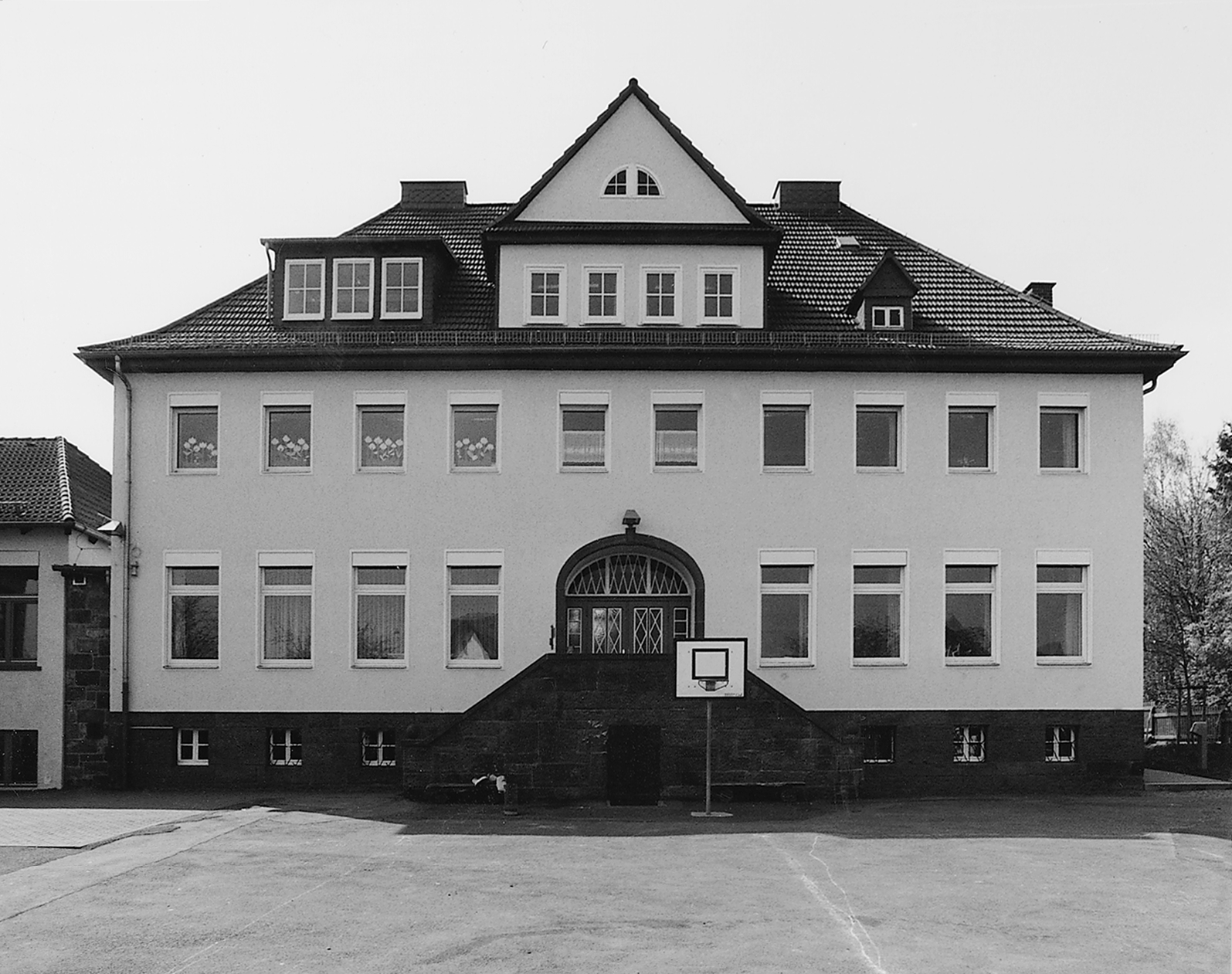 Von der Straße zurückliegendes Schulhaus mit vorgelagertem Pausenhof am südlichen Ortseingang plaziert; klar gegliederter Baukörper mit steilem Satteldach, der Anklänge an das Neue Bauen der Zwanziger Jahre erkennen läßt. Die Gestaltung der Glasversprossung an der Eingangstür und die Vergitterung der Kellerfenster stellen wohl formal eine Verwandtschaft zum expressionistischen Zackenstil her, wie er in der Neuausstattung der Kirche von Kirchhain und im Hülsenhaus in Marburg zur Anwendung kam. Aus architekturgeschichtlichen Gründen steht der 1926 errichtete Bau unter Denkmalschutz.