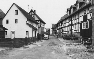 Eine Parallelentwicklung ist entlang der Marburger Straße um etwa die gleiche Zeit zu beobachten. In der nahen Verlängerung der Marktstraße, die bis in die Lehmkaute als Weg nach Momberg reicht, siedeln sich entlang der Marburger Straße bereits im 18. Jh. bäuerliche Gehöfte an, die in der Folgezeit durch villenartige Bauten ergänzt werden. Hier reift die Bauweise in Ziegelsichtmauerwerk bei den Hausnummern 17 und 25 zu einer handwerklichen Blüte.