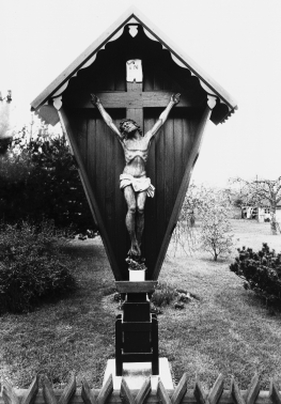 An der Einmündung zur Straße Am Struthfeld plaziertes Kruzifix, das erst nach mehrfachem Ortswechsel an diesen Standort gelangte. Eichenes, wohl zu Beginn des 20. Jhs. entstandenes Holzkreuz mit Titulus und hölzernem Korpus, Wetterschutzbedachung; ortsgeschichtliches Kulturdenkmal als Zeugnis der bis ins 20. Jh. fortlebenden Frömmigkeit in katholischen Landgemeinden.
