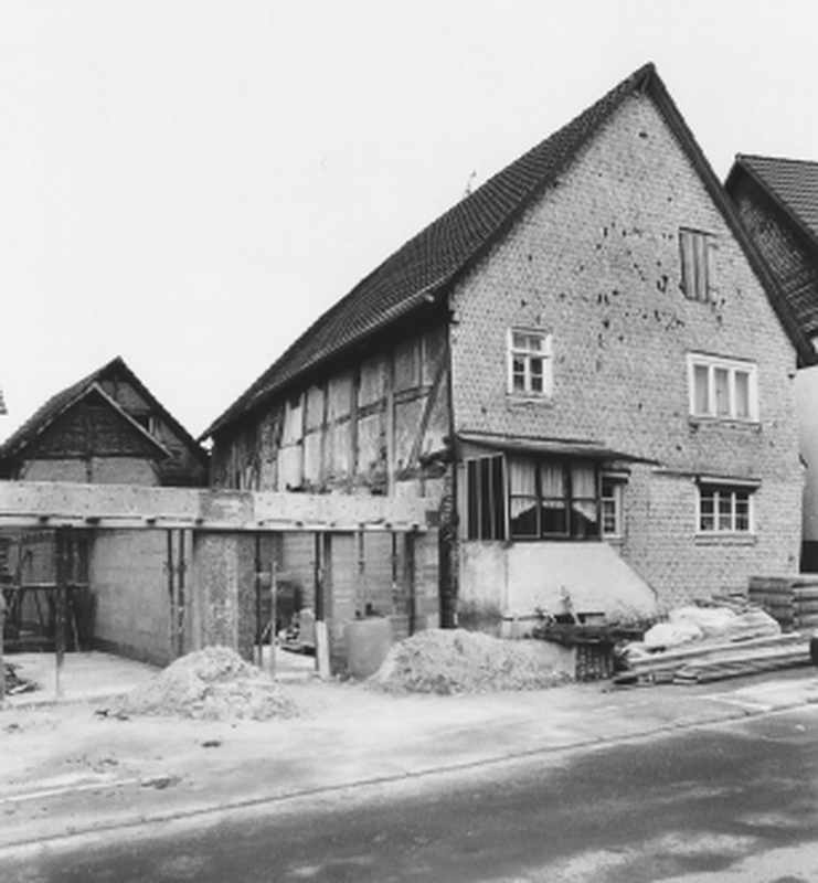 Giebelständiges Fachwerkgebäude als in der Tiefe zoniertes Einhaus, der Wohnteil zur Straße in Rähmbauweise, der Wirtschaftsteil als Ständerbau errichtet, in den Gefachen hat sich der gestippte Putz erhalten. Das teilweise durch Holzschindeln behangene Haus mit kleiner, vorgelagerter Hoffläche entstammt noch dem 18. Jh.