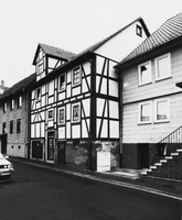 Dicht an der Straße plaziertes, traufständiges Wohn- und Wirtschaftsgebäude, auf Werksteinsockel errichteter Rähmbau in konstruktivem Fachwerkgefüge des letzten Drittels des 19. Jhs. in Form eines Einhauses; zwischen Stall- und Scheunenzone im Bereich des hohen Sockels eingetiefter Eingang mit Haustür aus der Bauzeit, das Zwerchhaus im Dach von Bedeutung im Straßenraum.