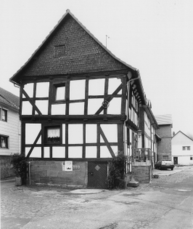 Am Kopf einer Bebauungsinsel zwischen Großer und Kleiner Brunnenstraße exponiertes Fachwerkgebäude vom Typ eines Wohnstallhauses auf hohem Sockelgeschoß. Die breitgestellten Streben, die Verzierungen am Geschoßwechsel in Form von geschuppten Füllhölzern und taubandverzierter Obergeschoßschwelle deuten auf eine Entstehung im frühen 18. Jh.