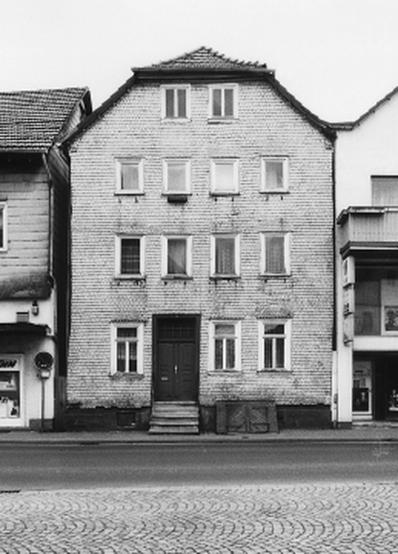 Dreigeschossiges, giebelständiges Wohnhaus mit bedeutender Wirkung als Kopfbau des Marktplatzes. Klar gegliederte vierachsige Fassade, Eingang mit Haustür aus der Bauzeit nach links aus der Mitte versetzt, rechts daneben ein Kellerhals erhalten. Der Giebel mit handgemachten Holzschindeln verkleidet, das Dach zur Straße mit Krüppelwalm. Entstehungszeit in der ersten Hälfte des 19. Jhs.