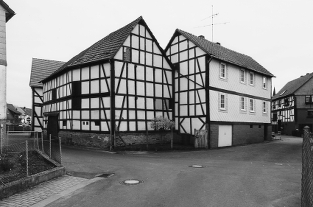 Teilweise mit Platten verkleidetes Wohnhaus auf hohem Werksteinsockel in Rähmfachwerk des ausgehenden 19. Jhs. Mit konstruktiven Verstrebungen, dreiflügelige Sprossenfenster und Haustür aus der Bauzeit erhalten, durch seine beherrschende Stellung am kurzen Verbindungsweg von Mauer- und Bogenstraße von städtebaulicher Bedeutung.