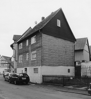 Traufständiges Wohnhaus mit im Straßenraum exponierter spitzwickliger Ecke, der Stall ebenerdig unter dem Wohngeschoß; hier massive Erneuerungen, im Rähmfachwerk des Obergeschosses Eckstiele durch Säulen mit Basis- und Kapitellausbildung. Der über unregelmäßigem Grundriß errichtete Bau ist aufgrund seiner Fachwerkzier ins späte 18. Jh. zu datieren.