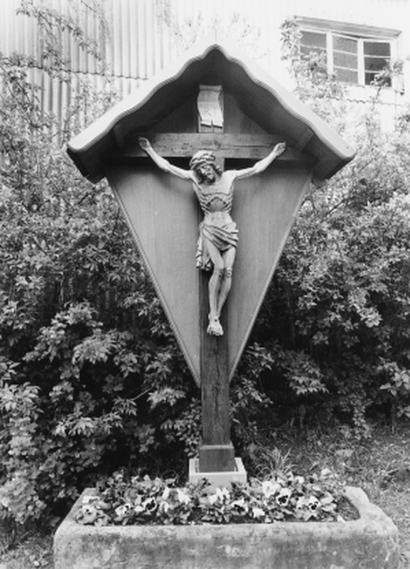 Hölzernes Kruzifix, in der zweiten Hälfte des 20. Jhs. nördlich der Dreifaltigkeitskirche auf dem Kirchhof aufgestellt, hölzerner Korpus und Titulus, Schutzdach; ortsgeschichtliche Bedeutung als Zeichen der bis zum heutigen Tag fortlebenden Frömmigkeit in den ehemals zu Mainz gehörenden katholischen Gemeinden.