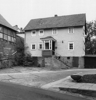 Kleinbäuerliches Wohn- und Wirtschaftsgebäude als traufständiger, im Straßenraum zurückgesetzter Rähmbau des ausgehenden 19. Jhs. auf hohem, zu Stallzwecken genutztem Bruchsteinsockel. Erhalten haben sich die original Haustür und Fenster mit liegender Sprossen-Teilung. Holzschindelverkleidung der Traufseite zum kleinen, vorgelagerten Wirtschaftsraum hin. Bedeutsam aus sozialgeschichtlichen als sogennntes "Ellerhaus" der benachbarten Hofanlage In der Gasse 10.