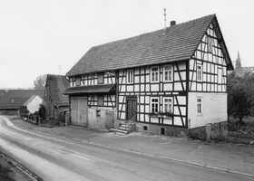 Traufständiger Streckhof aus dem letzten Viertel des 19. Jhs. mit nahezu vollständig erhaltenen Einzelteilen wie Sprossenfenstern, kassettierter, zweiflügeliger Haustür, Außentreppe etc. An das auf erhöhtem Sockel stehende Wohnhaus schließen links der Stall, die Scheune und als Abschluß der Abort an. Der Bau steht markant im Straßenraum.
