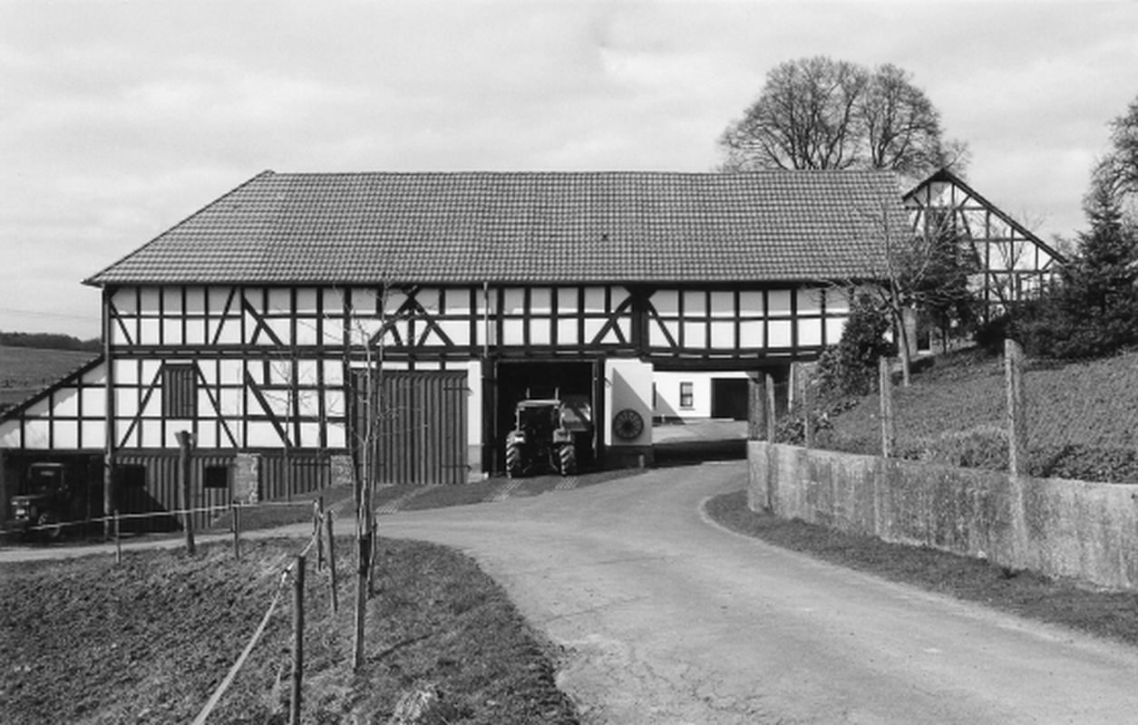 Im westlichen Talgrund gelegene "Hainmühle" als Vierseithof mit zwei Scheunen, deren Entstehung durch Inschriftsteine auf 1746 und 1775 datiert ist, hier durch Mannfiguren hervorgehobenes Fachwerk. Das Wohnhaus weitgehend erneuert, ursprünglich ein Mühlengebäude; Teile des sandsteinernen Untergeschosses mit der Wellenaufnahme erhalten, das oberschlächtige, eiserne Mühlrad mit einem Durchmesser von über 4,0 m aus dem frühen 19. Jh. Ist noch vorhanden und funktionsfähig, ebenso das in Stein gefaßte Gerinne und Teile des Tosbeckens. Die Hofanlage bildet den kopfseitigen Abschluß des Tonweges.