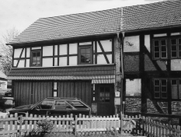 Streckhof aus zwei Wirtschaftsgebäuden und einem Tagelöhnerwohnhaus, das heute als Veilchengasse 4 zum Heimatmuseum ausgebaut ist. Fachwerkrähmkonstruktion mit Dreiviertelstreben und teilweise profiliertem Geschoßversprung. Das mittlere Gebäude besitzt als eines der wenigen Beispiele in Mengsberg eine Inschrift: „Johan Conrath Baher als Foerster und dessen Ehefrau gebohrne Rosentalin haben dieses Haus gebaut 1771".