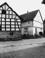 Die Parallelhofanlage bildet eine dreieckförmige Bebauung zwischen Arenecke und Zu den Steingärten. Als Scheune ein Rähmbau in starkem Eichenholzfachwerk mit profiliertem Geschoßversprung und Inschrift über dem Tor: „Heinrich Sack und Maria Katharina seine Ehfrau haben diesen Bau in Gottes Namen erbaut durch den Zimermeister Herrmann H. Schneider … 1818". Wohnhaus im Erdgeschoß komplett erneuert, unter der Plattenverkleidung ist Fachwerk aus dem frühen 19. Jhs. wie an der Scheune zu erwarten. Als städtebaulich wichtiger Teil ein auf beiden Giebelseiten dem Straßenverlauf angepaßtes Wirtschaftsgebäude auf Feldsteinsockel.
