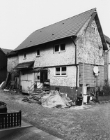 An der Ecke der Straßenbiegung angesiedeltes Einhaus mit Scheunenteil links und einem unter dem Wohnbereich rechts angeordneten Stall. Seitlich der Scheune späterer Stallanbau bereits in Ziegelmauerwerk. Der Rähmbau des frühen 19. Jhs. mit traufseitigem Geschoßversatz ist bis auf Ausnahmen vollständig mit Holzschindeln verkleidet, darunter ist ein Fachwerk mit Dreiviertelstreben zu erwarten, von dem die Taubandverzierung am Geschoßwechsel und der Säulenschmuck der Eckstiele sichtbar ist. Die Haustür der Bauzeit ist original erhalten. Der Bau steht aus städtebaulichen Gründen und wegen der Schnitzereien unter Schutz.