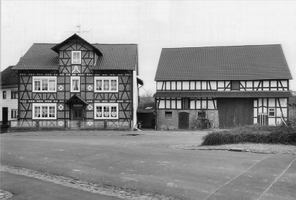 Städtebaulich markant an der Einmündung der Burgasse in die Wieraer Straße angesiedelte Hofanlage, von besonderer Präsenz das traufständige Wohnhaus in guter handwerlicher Ausstattung; ursprünglich fünfachsig gegliederter Fachwerkbau mit starker Mittenbetonung durch das in der Symmetrieachse über dem Eingang platzierte Zwerchhaus. Die Ausfachung durch Backstein zweifarbig mit Schmuckelementen, das dekorative Holzgefüge geprägt durch Andreaskreuze und konvergierende Streben mit Kopf- und Fußband. Die ebenfalls traufständige, etwas zurückliegende Stallscheune zeitgleich mit dem Wohnhaus zu Beginn des 20. Jhs. erbaut.