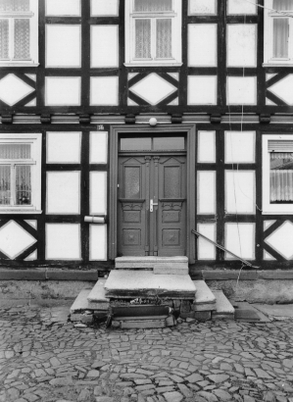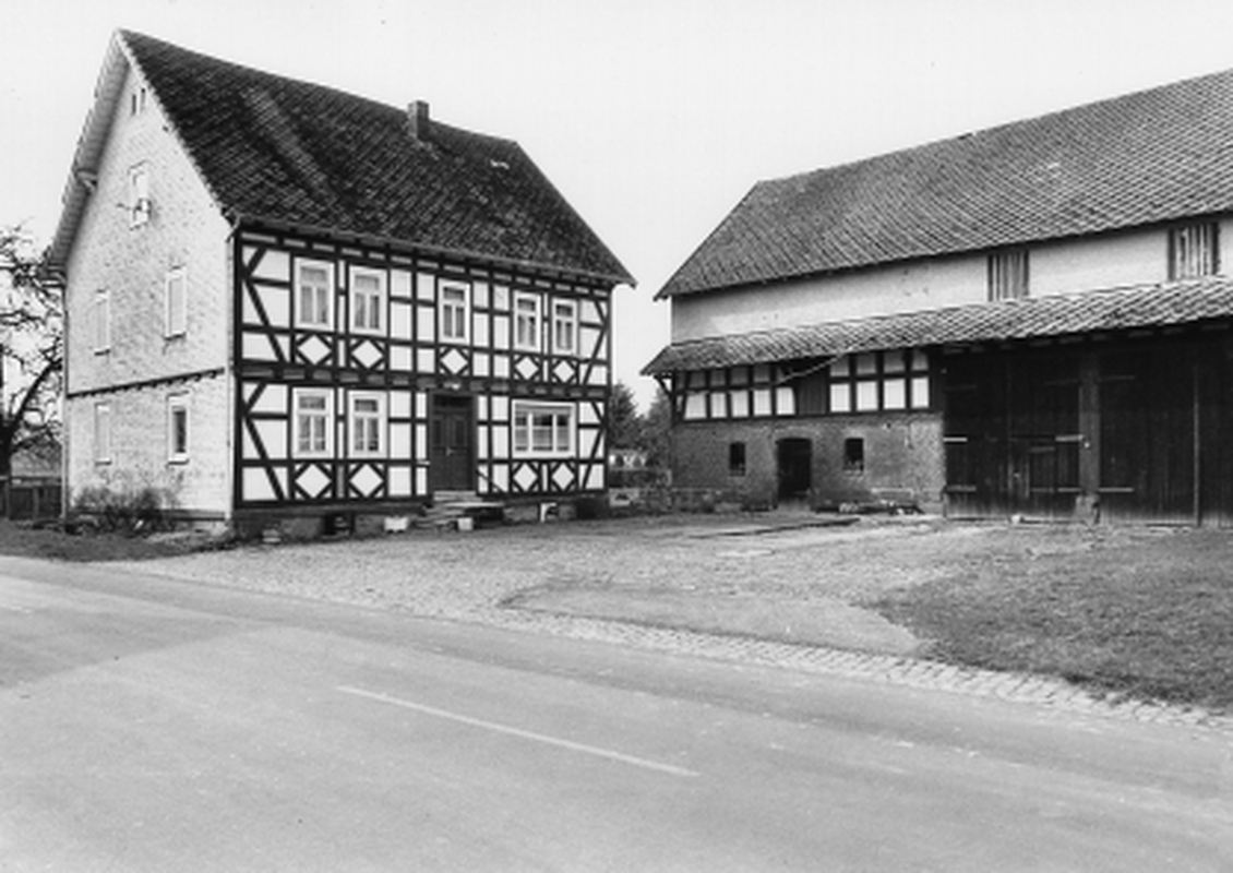 Winkelhofanlage, die mit der gegenüberliegenden Hofanlage Nr. 9 zusammen den optischen Ortseingang an der Speckswinkeler Straße bildet. Das als Torbau fungierende, weitgehend original erhaltene Wohnhaus ein giebelständiger Rähmbau mit leichtem, profiliertem Geschoßversprung in klarer symmetrischer Ordnung, das Fachwerk durch Rautenzier in den Brüstungsfeldern und historisierende Verstrebungsformen geschmückt, Neben den Sprossenfenstern ist auch die Haustür aus der Bauzeit überliefert, Scheune und Wohnhaus partiell durch Holzschindeln verkleidet, die Dächer durch diagonal verlegte Betonplatten gedeckt. Als Beleg für das Wiederaufleben historisierender Fachwerkformen des 17. und 18. Jhs. zu Beginn dieses Jahrhunderts Kulturdenkmal aus städtebaulichen und baugeschichtlichen Gründen.