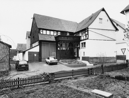 An der Nordseite der Kirche angesiedelte, winkelförmige Hofanlage, das giebelständige, im Erdgeschoß massiv erneuerte Wohnhaus und die Scheune etwa zeitgleich erbaut, das Rähmfachwerk mit profiliertem Geschoßversprung, verstrebt durch halbe Mannfiguren. An der Scheune Inschrift: "Johan Laurenzius Gies und Mariaelisabetta seine Ehfrau haben diesen Bau in Gottes Namen erbaut durch den Zimermeister Joh… Adam. hann von Lischeit im Jahr 1823, den 14ten May". Die teils durch Holzschindeln behangenen Baukörper sind durch den Einbau eines Freisitzes im Winkel der Gebäude empfindlich gestört.