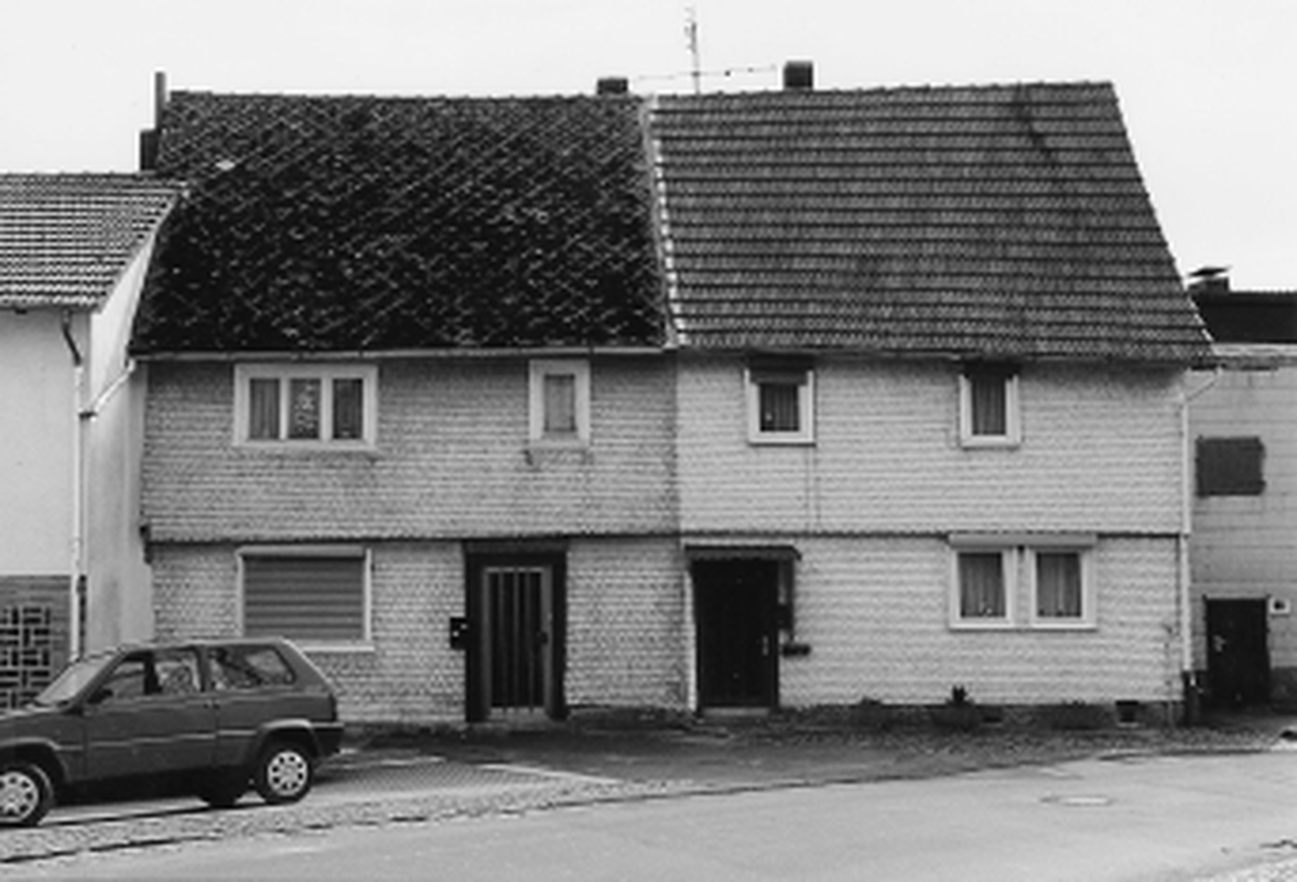 Beidseitig eingebautes Wohnhaus als zweigeschossiger traufständiger Fachwerkbau, der wohl in Mischbauweise aus Rähm- und Ständerkonstruktion errichtet ist. Der offenbar nicht unterkellerte Bau zeigt einen Geschoßversatz an der Straßentraufe, die Fassade ist mit Holzschindeln behangen. Das im Vergleich mit den sonstigen Bauten in Momberg steile, mit Betonplatten gedeckte Dach läßt eine Entstehungszeit im 18. Jh. vermuten. Das Gebäude steht als Kleinstanwesen eines Tagelöhners aus städtebaulichen, bau- und sozialgeschichtlichen Gründen unter Schutz.