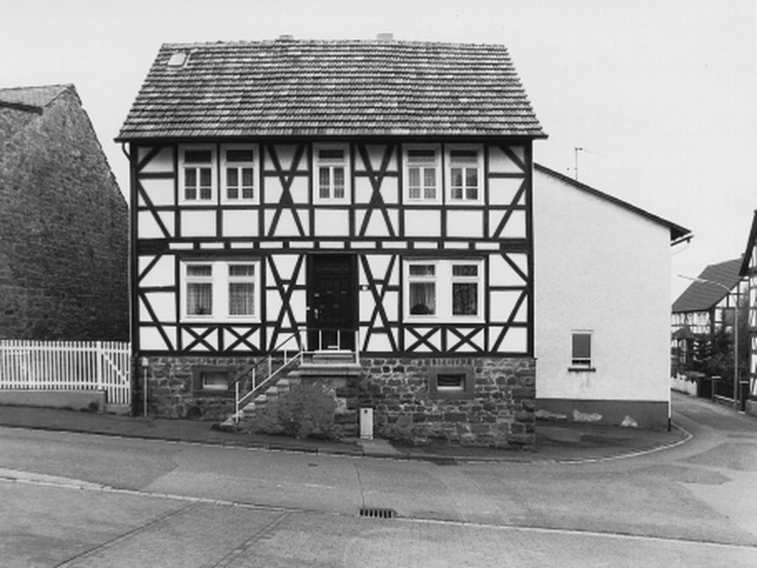 Die Biegung der Obergasse städtebaulich fassendes Wohnhaus, gut erhaltener Rähmbau auf Bruchsteinsockel mit Betonung der Ecken; gleichmäßiges, fünfachsig gegliedertes Fachwerk, in dem brüstungs- und geschoßhohe Andreaskreuze die Fassade beherrschen. Das Fachwerk des ausgehenden 19. Jhs. ist in nahezu gleicher Gestaltung am Haus Mittelgasse 18 und Hauptstraße 24 zu beobachten.