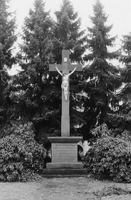 In der Sichtachse der aus dem historischen Stadtkern führenden Hauptstraße aufgestelltes sandsteinernes Kruzifix, das sich über einem Tischpostament mit profilierter Abdeckplatte erhebt; Korpus und Titulus aus Metall. Anstelle eines Jahrhunderte alten Kreuzes 1946 aus Dankbarkeit über die Verschonung vor Kriegsschäden von der Gemeinde Allendorf gestiftet. Das Kreuz ist Station bei der jährlichen Flurprozession zu Christi Himmelfahrt.
