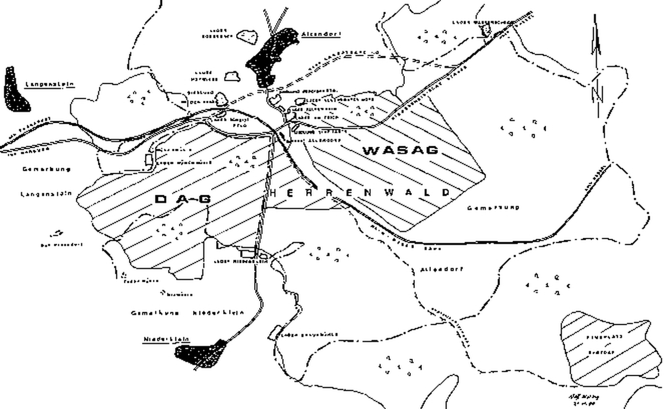 Mit der Planung und Bauherrnschaft des Sprengstoffwerkes Herrenwald beauftragte das Oberkommando der Kriegsmarine (OKM) die Firma Westfälisch-Anhaltische Sprengstoff AG, Berlin (WASAG). Eigentümer wurde der Reichsfiskus Kriegsmarine. Die WASAG plante vor Ort mit einer eigenen Bauabteilung, die auch Architekturbüros der Umgebung miteinbezog. Dieses Verfahren führte dazu, daß zum Ende des Krieges von den geplanten vier Sprengstoffproduktionsgruppen erst zwei fertiggestellt waren. Die WASAG mit Sitz in Reinsdorf bei Wittenberg wurde 1921 von den Aliierten als alleiniger Sprengstoffhersteller der Reichswehr zugelassen. Im Laufe der 30er Jahre übernahm ähnlich wie bei der DAG die I.G. Farbenindustrie auch hier die Aktienmehrheit, so daß die deutsche Sprengstoffherstellung als Monopol in der Händen dieser einen Firma lag. Zwischen 1938 und 1942 wurde durch die Reichsbahn ein leistungsfähiges Schienennetz mit Personen- unnd Güterbahnhof erstellt. Baubeginn der beiden Werke, die von der Reichsführung in die höchste Dringlichkeitskategorie eingestuft wurden, war für das DAG-Gelände 1938, die WASAG startete ein Jahr später.