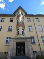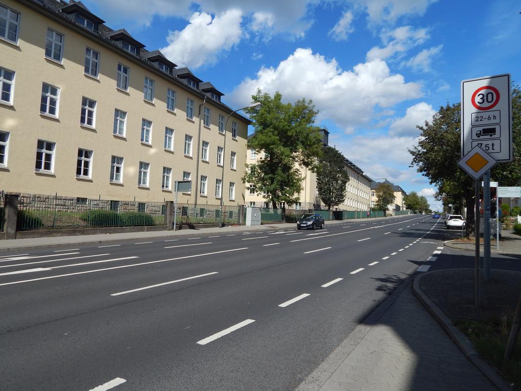 Sachgesamtheit von fünf entlang der Leipziger Straße gereihten Kasernengebäuden. Zwei- bzw. dreigeschossige Putzbauten über Sandsteinsockeln, mit regelmäßig gesetzten Lochfenstern und Walmdächern, die mit Walmdachgaupen regelmäßig besetzt sind. Besonders hervorgehoben sind die Eingänge, entweder durch breite Steingewände oder - auf der Hofseite - teilweise durch spitz vorspringende Risalite, welche die Treppenhäuser enthalten. Hier auch breit gelagerte Portici mit flachen Dächern, in den Obergeschossen der Risalite interessante Terracottareliefs, die jeweils Berufe oder Sportarten darstellen. Das Kommandantengebäude durch einen großen, viereckigen Dachreiter hervorgehoben. An der Schmalseite des Gebäudes links neben der Einfahrt die Plastik einer hl. Barbara mit Schwert und Kanonenkugel. Sie gilt als Patronin der Artillerie und wurde 1938 von Alfred Krenmayr aus nassauischem Marmor gearbeitet. Im Inneren der Gebäude die ursprüngliche Raumstruktur und die Treppen im Wesentlichen erhalten.