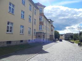 Für das Erscheinungsbild von Bedeutung und auch wichtig für die geschichtliche Aussagekraft der Anlage ist die Einfriedung mit der - allerdings durch diverse Baumaßnahmen der letzten Jahre veränderten - Toreinfahrt an der Leipziger Straße. Sie besteht aus unterschiedlich breiten Steinpfosten mit dazwischen eingespanntem Eisengitterzaun bzw. -tor.
