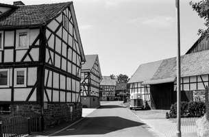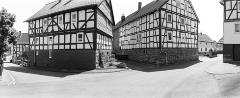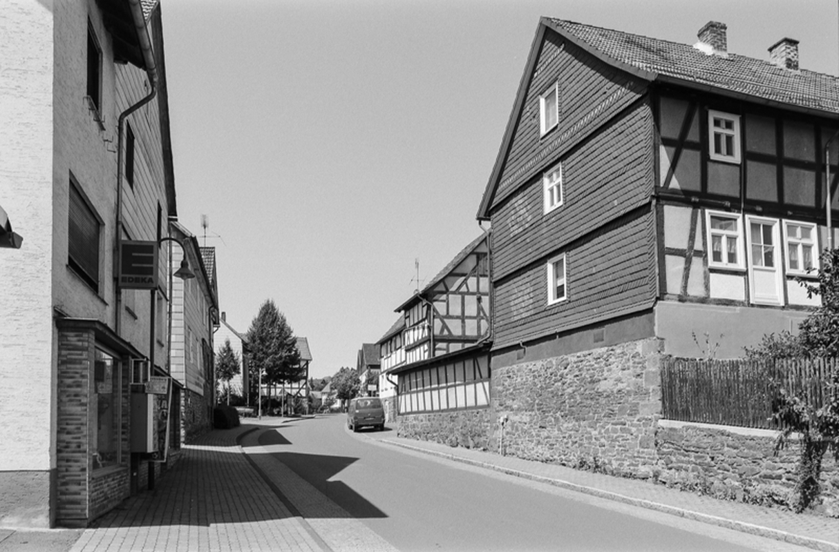 Hauptstraße 9-27, 39-51, 18-22, 26-32, 36-40; Kirchweg 1, 2, 3, 4, 6; Lichtweg 1, 2; Ringstraße 1, 5-17, 4-34; Zum Weidenborn 1, 2, 4. Der in seiner mittelalterlichen Grundstruktur erhaltene Dorfkern von Viermünden dokumentiert bis heute nahezu unverfälscht seine Entstehung aus drei Zentren unterschiedlicher Qualität. Das Zentrum bildet der Bereich innerhalb der Ringstraße mit seinen bäuerlichen Hofstellen, die sich auf sehr unregelmäßigen Parzellen zumeist mit giebelständigen Gebäuden der Ringstraße zuwenden. Der Baubestand, der sich heute zu beiden Seiten der Ringstraße befindet, besteht zum überwiegenden Teil aus Hofreiten, die in der Zeit zwischen 1750 und 1850 errichtet wurden. Der vielfach gekrümmte Straßenverlauf der Ringstraße wird durch diese Gebäude teilweise optisch verengt und an anderen Stellen, wo sich direkte Einblicke in die Hofräume ergeben, stark aufgeweitet, so dass insgesamt die städtebaulich reizvolle Struktur eines im Innenbereich stark verdichteten und dennoch landwirtschaftlich geprägten Dorfes erhalten blieb.Nördlich wird die Ringstraße von der Hauptstraße flankiert, an der sich weitere Hofreiten zumeist aus dem späteren 18. Jahrhundert aufreihen. Die früheren Endpunkte des Dorfes bilden im Westen der Kirchhof mit seiner im Kern noch romanischen Kirche und der umgebenden Bebauung sowie am östlichen Ende des Dorfes das seit dem 15. Jahrhundert errichtete Schloss mit seinen beiden parallel angeordneten, wuchtigen Bruchsteinbauten und die daran östlich anschließenden Wirtschaftsgebäude. Letztere seit dem ausgehenden 17. Jahrhundert errichteten Bauten wurden bis zum ausgehenden 19. Jahrhundert zu einer geschlossenen Hofanlage erweitert, deren hochaufragende Traufseiten im Knick der Hauptstraße das östliche Ende des Dorfes markieren.In der westlichen Verlängerung der Hauptstraße entstanden seit der Mitte des 19. Jahrhunderts eine Reihe unterschiedlich großer Hofreiten. Während die nördliche Randbebauung von traufständigen Fachwerkhäusern geprägt ist, die auf schmalen, im rückwärtigen Bereich vom Weiberweg begrenzten Parzellen entlang der Hauptstraße errichtet wurden, zeigen sich auf der südlichen Seite größere Hofreiten, die zur Straße durch traufständige Wohnhäuser abgeschlossen sind und im hinteren Bereich über unterschiedlich große, zum Teil in jüngerer Zeit veränderte Scheunen verfügen. Deutlich zeigt sich bis heute der Charakter der Straße als achsiale Erweiterung des Dorfes in einigem Abstand zum eigentlichen Dorfkern im Bereich der Ringstraße.