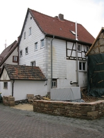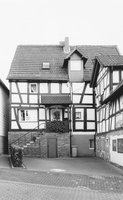 Stattliches, zweigeschossiges Fachwerkwohnhaus, möglicherweise errichtet noch im 17. Jahrhundert. Hohes, massives Sockelgeschoss, zwei Hauptgeschosse, als Abschluss aufgeschobenes Satteldach. Das Fachwerk konstruktiv einfach. Der Eingang zur Nordhälfte des senkrecht zum First zweigeteilten Hauses über eine einhüftige Treppe zu erreichen, hier im Dach Ladeluke. Der Eingang zur Südhälfte im Sockel der westlichen Giebelseite; hier niedriger seitlicher Anbau. Im Sockelgeschoss Gewölbekeller, die Grundrissdisposition der oberen Geschosse im Wesentlichen noch vorhanden. Teilweise Reste früher Wandgestaltung erhalten. Südlich des Hauses ein kleines Tagelöhnerhaus (Nr. 15), zweigeschossig mit Satteldach, das Erdgeschoss massiv, das Obergeschoss in einfachem Fachwerk. Im Erdgeschoss war auch ein Stall untergebracht, das Obergeschoss diente zum Wohnen. Das Tagelöhnerhaus dürfte erst im 19. Jahrhundert entstanden sein.