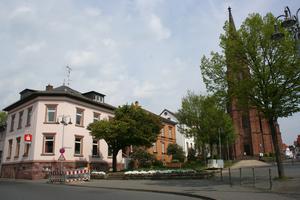 Der Bereich Wilhelm-Leuschner-Platz 8-14 sowie Frankfurter Straße 1 besteht aus gut erhaltenen gründerzeitlichen Gebäude sowie der Evangelischen Kirche. Das Umfeld der Kirche ist ortsgeschichtlich bedeutsam als repräsentative Umgestaltung des ehemaligen Kirch- und Rathausplatzes nach 1862 und daher als Gesamanlage geschützt.