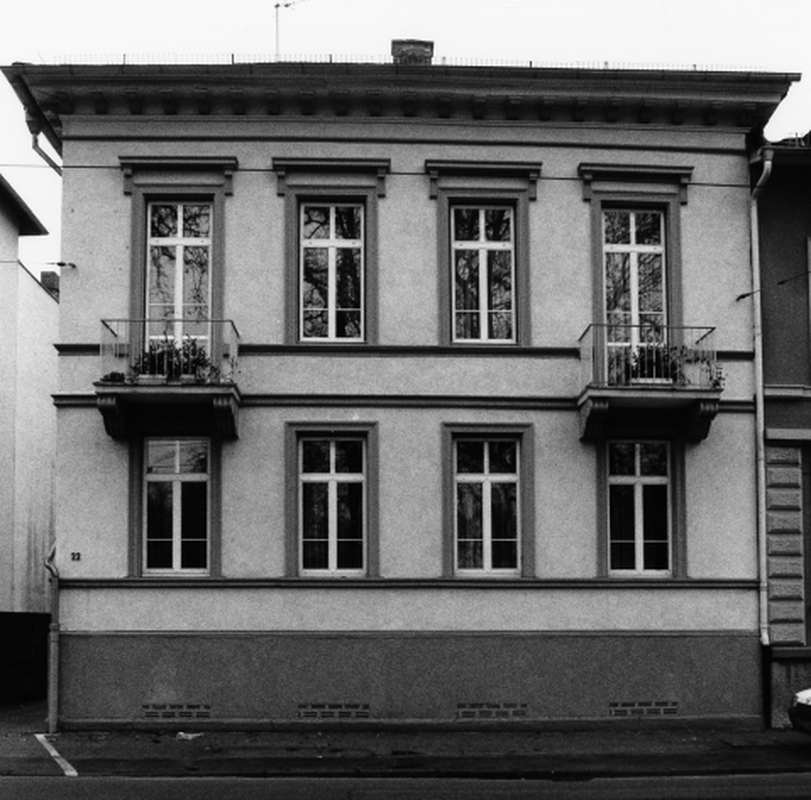 Zweigeschossiges kubisches "Landhaus" um 1860 mit vier Fensterachsen. Durch Gesimse horizontal gegliedert. Fassade mit kräftigem Kranzgesims gegen das flachgeneigte Dach abgeschlossen und durch zwei kleine, außenliegende Balkone akzentuiert. Im Hof ein historistischer Wintergartenanbau mit für die Zeit charakteristischer Holzschnitzarbeit. Architekt Christian Lauteschläger.