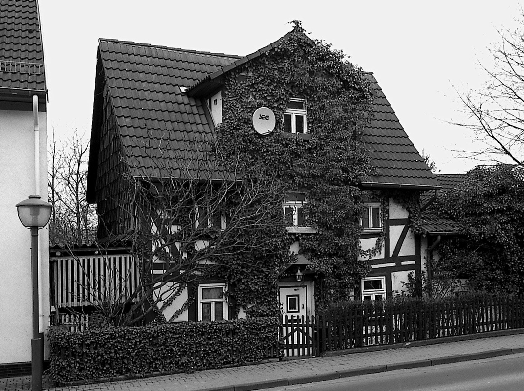 Das traufständige Gebäude wurde Anfang des 18. Jahrhunderts als Ernhaus am Rande der historischen Ortslage errichtet und Ende des 19. Jahrhunderts mit dem östlich anschließenden Stallgebäude zum Streckhof erweitert. Das Wohnhaus erhebt sich mit symmetrischem Fassadenaufbau in zwei Fachwerkgeschossen über einem niedrigen Sandsteinsockel. Zu den Eckständern verlaufen einfach verriegelte Dreiviertelstreben. Das Zwerchhaus wurde Mitte des 19. Jahrhunderts eingestellt. Der Stall ist im Erdgeschoss massiv gemauert, das Obergeschoss besteht aus einer einfachen Fachwerkkonstruktion.