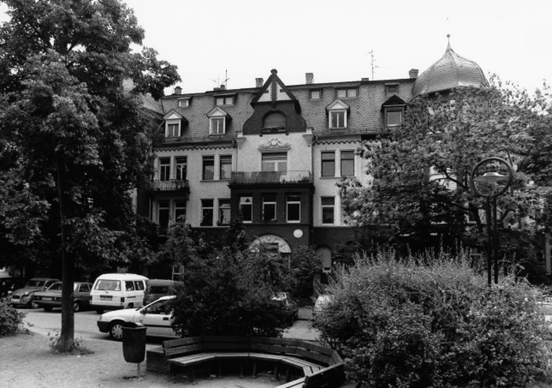 Einheitlich gegliederte und dekorierte Hausgruppe (zusammen mit Emilstraße 32 und Viktoriastraße 81). 1909 nach Plänen von Leonhard Schäfer erbaut. Symmetrische Fassade mit hohem Klinkersockel und in Putz zusammengefaßten Obergeschossen. Dominierende Vertikalgliederung. Die Eckhäuser mit den kuppelgeschmückten Türmen bilden einen markanten Akzent auf der südöstlichen Seite des Viktoriaplatzes; die Mittelachse ist vorgezogen und mit Klinker und Reliefdekor besonders betont. Im übrigen unaufwendiger elektizistischer Fassadenschmuck; vielfach sind die weißen Putzflächen mit kontrastfarbenem roten Klinker geschmückt. Die der ganzen Anlage gemeinsame Einfriedigung mit den im Mauerwerk hervorgehobenen Eckausbildungen ist erhalten.