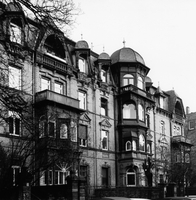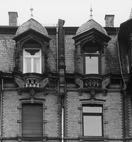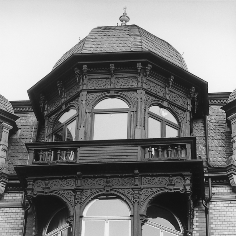 Außergewöhnliche Hausgruppe in der Formensprache der Neurenaissance, 1896-1898 errichtet. Fassaden dekorativ und plastisch belebt durch Vorbauten und Dachaufbauten in aufwendiger Holzarchitektur. Mittelbau besonders akzentuiert durch turmartig erhöhten und mit einer Dachkuppel versehenen Vorbau mit abwechselnd rechteckigem und polygonalem Grundriß. Die auffallende Wirkung im Ortsbild beruht vor allem auf der kontrastreichen Mischung heller Klinkerflächen mit zurückhalten dem Werksteindekor und den dunklen Elementen der Holzarchitekur, die in ihrem reichen Dekor die bekannten Zierformen der Steinarchitektur zu imitieren sucht. Dazu kommen im Bereich der Vorbauten, im Kranzgesims und in den Giebelvordächern flächige Schmuckfelder in durchbrochenem Holz.
