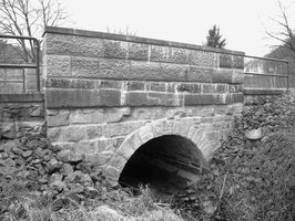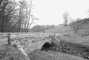 Die beiden unmittelbar aufeinander folgenden Brücken führen über den Osterbach und den Mühlengraben der Untermühle. Die größere, einbogige Brücke überspannt den Osterbach. Die Sandsteinbrücke besteht aus Rustikamauerwerk, mit kleinen Pfeilervorlagen an den Brüstungen. Ein Pfeiler zeigt die Jahreszahl 1924. Über dem Bogenstich ist eine Sandsteintafel mit einer verwitterten und unleserlichen Inschrift eingelassen. Die kleinere Rundbogenbrücke über dem Mühlengraben ist im gleichen Stil erbaut, allerdings ohne Pfeilervorlagen. Teilweise ist das Bauwerk mit Beton ausgebessert.