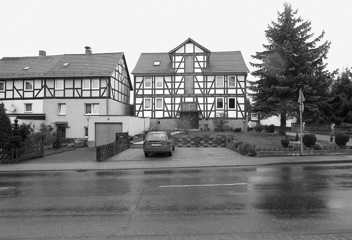 Das in zurückversetzter Lage traufständig errichtete Fachwerkwohnhaus ist inschriftlich auf 1829 datiert. Das heute in zwei Wohneinheiten unterteilte Gebäude wurde in Rähmbauweise auf einem halbhohen Sandsteinsockel errichtet. Das symmetrische aufgebaute Eichenfachwerkgefüge wird durch fast geschosshohe, zweifach verriegelte Langstreben ausgesteift und zeigt Leitermotive. Der Eingangsbereich wurde umgestaltet.