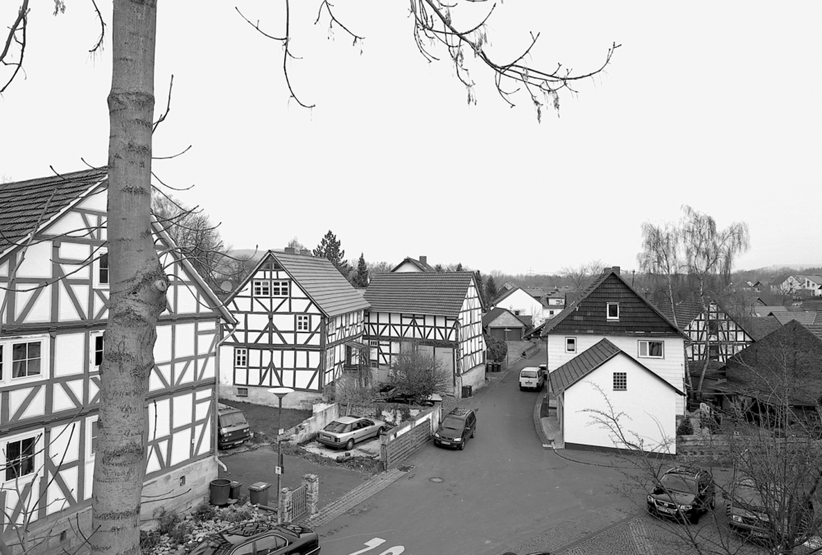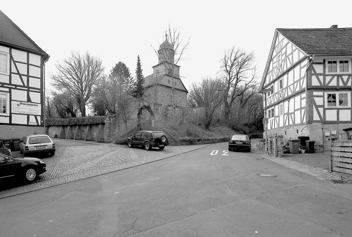 Den Ausgangspunkt der Ortsentwicklung bildete der im Süden des Dorfes am Ortsrand auf einer Erhöhung über dem Fluss gelegene Wehrkirchhof mit der Kirche. Von hier aus ließ sich der Flussübergang an der Handelsstraße überwachen, die noch heute durch den Verlauf der Hermann-Schafft-Straße und die 1767 errichtete Straßenbrücke ablesbar ist. Zwischen Kirche und der Hermann-Schafft-Straße erstreckt sich in Hanglage auf der Westseite der Bauna das alte Haufendorf im Bereich der heutigen Straßen An der Kirche. Eine erste Ortserweiterung entwickelt sich von hier aus nach Norden entlang der Landstraße bis zum Mühlengehöft.