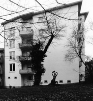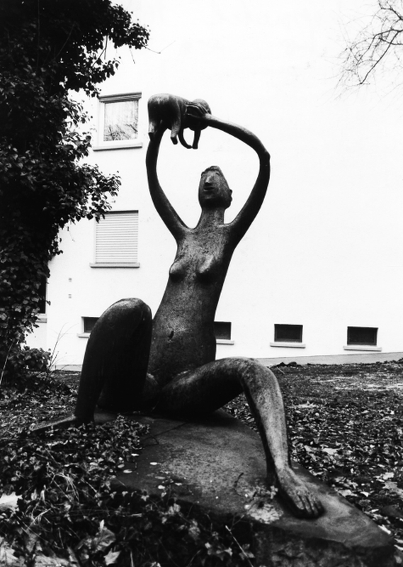 Im Garten, auf der Südseite, an der Heinrichstraße, steht die Plastik "Mutter und Kind" des Darmstädter Bildhauers Professor Wilhelm Loth - ein Beitrag zur Kunst am Bau.