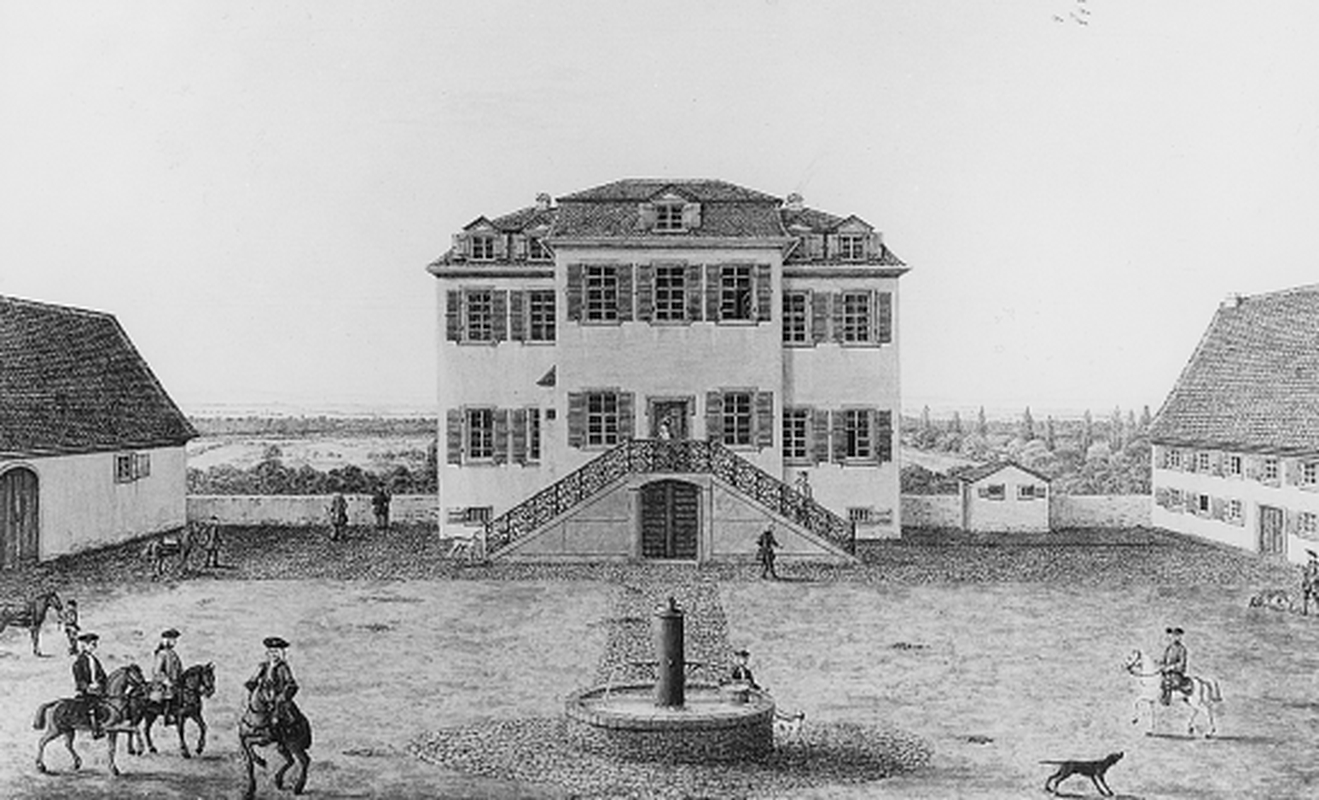 Die 1708 durch Landgraf Ernst Ludwig eingeführte Parforcejagd führte zunächst in Darmstadt zur Überlassung des Neuen Fürstenhofs am Paradeplatz an die Jägerei und weiter zur Anlage des Bessunger Jagdhofes. 1709 begannen die Arbeiten an dem sich aus Wohn- und Wirtschaftsgebäuden und dem Kavaliersbau zusammensetzenden Jagdhofkomplex im Bereich des alten, 300 Morgen großen Bessunger Hofgutes. Die Übersiedlung vom Paradeplatz kann, durch Verzögerungen bedingt, erst 1725 erfolgt sein. Nach dem Hillschen Prospekt (1775) bestand der Jagdhof aus zwei Höfen. Beide, Forstmeisterhaus und Jagdhof, durch unterschiedliche Höhenlagen voneinander getrennt, markierten in der Art einer Bastion den historischen Ortsrand Bessungens.