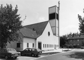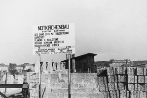 Die Gemeinde selbst setzte den Bausatz innerhalb von 1500 Arbeitsstunden zusammen. Grundsteinlegung war am 3. September 1949, Einweihung am 19. März 1950. Drei Jahre später begann die Matthäusgemeinde mit dem Bau ihres benachbarten Gemeindezentrums. 1959 entwarf Otto Bartning den Glockenturm aus Beton. 1960 weihte die Gemeinde ihre vier Glocken ein.