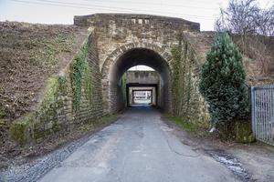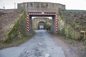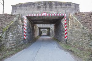 Wesentlich aufwändiger gestaltet ist die dritte Brücke von Süden. Sie besteht durchgehend aus Sandstein-Bossenquadern. Die Durchfahrt wird von einem Tonnengewölbe überspannt. Ihre Brüstung ist in der gleichen geschwungenen Form ausgeführt wie die der andern Brücken und ebenfalls mit Sandsteinplatten abgedeckt. Drei hochrechteckige angedeutete Öffnungen verzieren die Mitte der Brüstung. Die prunkvollere Gestaltung verweist möglicherweise auf die Bedeutung der darüber geführten Hauptstrecke der „Main-Neckar-Bahn“.