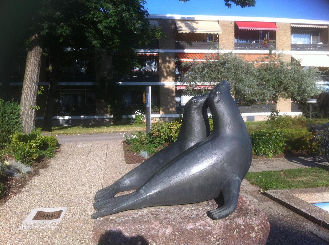 Überdies blieb die qualitätvolle bauzeitliche Ausstattung der Gebäude und der Grünanlage erhalten. Die Bronzeplastik zweier Seehunde neben dem Brunnen stammt von dem Darmstädter Bildhauer Fritz Schwarzbeck. Auf den Wegen der Grünanlage und der Innenhöfe, den Treppen, den Laubengängen sowie an der Umfassung des Brunnenbeckens blieben die Waschbetonplatten unversehrt erhalten. Die Lampen, die die Grünanlage und Laubengänge beleuchten sowie jene, die an den Stützen des Wandelganges angebracht sind, zählen ebenso zur ursprünglichen Ausstattung, wie die Geländer und die schwarz beschichteten Handläufe an den Treppenaufgängen und in den Laubengängen. In nahezu allen Gebäuden blieben zudem die Aufzugsanlage als auch die Fenster der Erbauungszeit erhalten.