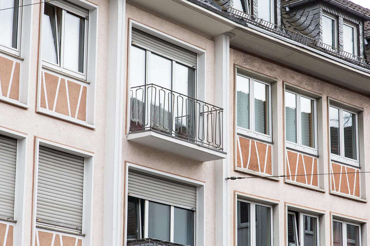 Die Gebäudegruppe folgt in der Höhenstaffelung der natürlichen Topografie und ist geprägt von traufständigen Satteldach- und Walmdachhäusern mit weitem Dachüberstand und Dachgaupen. Die Fassaden sind ohne viel Aufwand aber mit charakteristischen Elementen der Wiederaufbauzeit liebevoll durchgestaltet: Fein gerahmte, teilweise gruppierte Fenster, pastellfarbige ornamentierte Brüstungsfelder, bemalte Wandflächen, elegant geschwungene Brüstungsgitter, unaufdringliche Gliederung durch schlanke Lisenen und Fenstererker sowie dünne Dach- und Vordachränder.