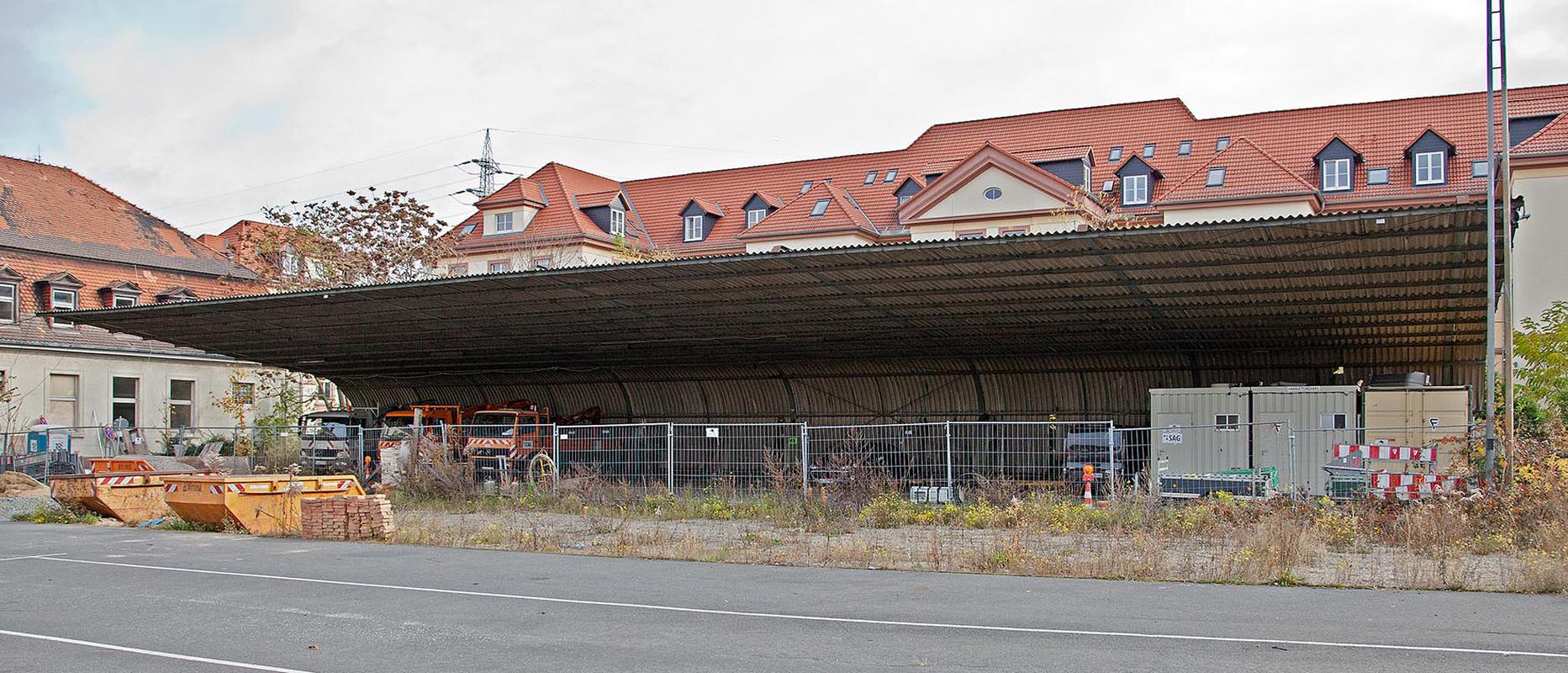 Zwei große Fahrzeugunterstellhallen, deren Hauptkonstruktion aus weit auskragenden, geschwungenen Stahlbügeln besteht, wurden vermutlich in den 1950er Jahren im Zuge neuer Nutzungen errichtet. Ihre statisch und gestalterisch außergewöhnliche Erscheinung repräsentiert das neue experimentierfreudige Bauen in der Wiederaufbauzeit nach dem Zweiten Weltkrieg. Da die beiden Dächer nicht ursprünglich zum Areal der Kaserne gehörten, wird die Erhaltung der kleineren nördlichen Konstruktion für ausreichend erachtet, um diesen Bautypus darzustellen.