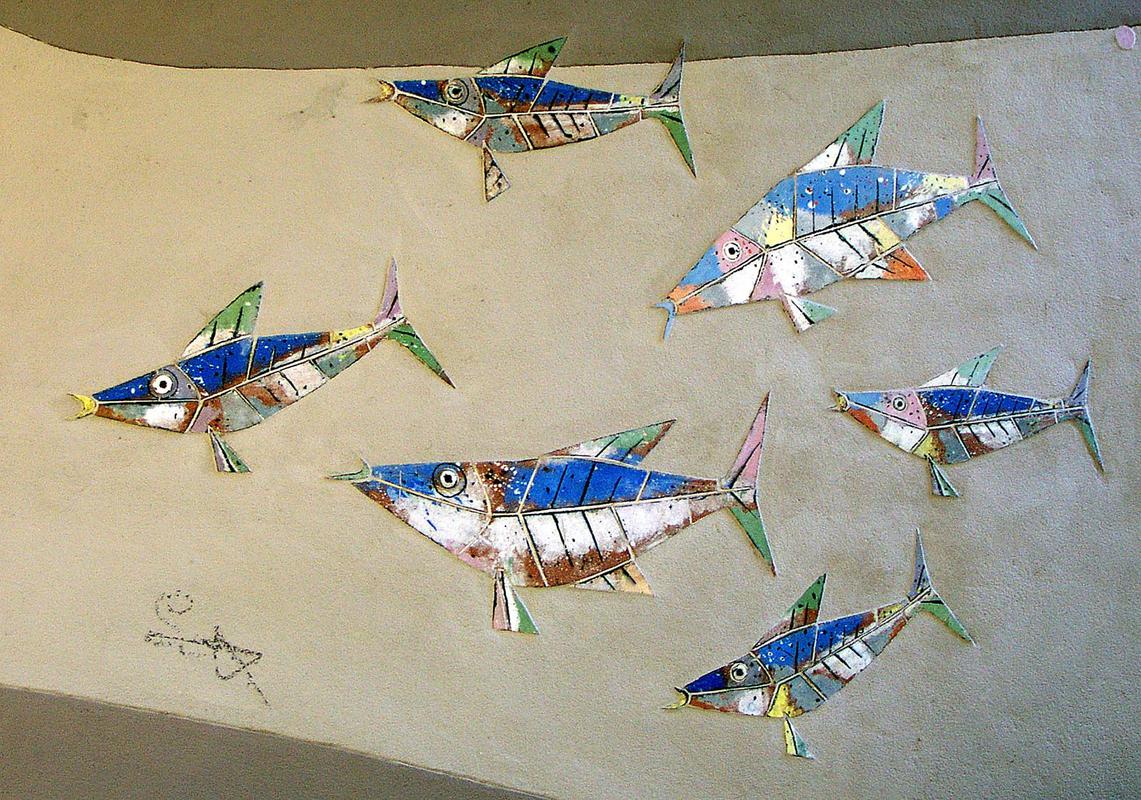Eine Besonderheit findet sich in der Tordurchfahrt der Heinrichstraße: Hier hat der Künstler Erwin Spuler, der an der TH Karlsruhe lehrte, 1956 ein drei mal sechs Meter großes farbiges Keramikmosaik geschaffen. Es zeigt abstrahierte Pflanzen, Fische und Vögel in lockerer Komposition, Leichtigkeit vermittelnd und typisch für die Kunst am Bau der Wiederaufbauzeit. Die Keramiken hat Spuler in der staatlichen Majolikamanufaktur Karlsruhe anfertigen lassen.