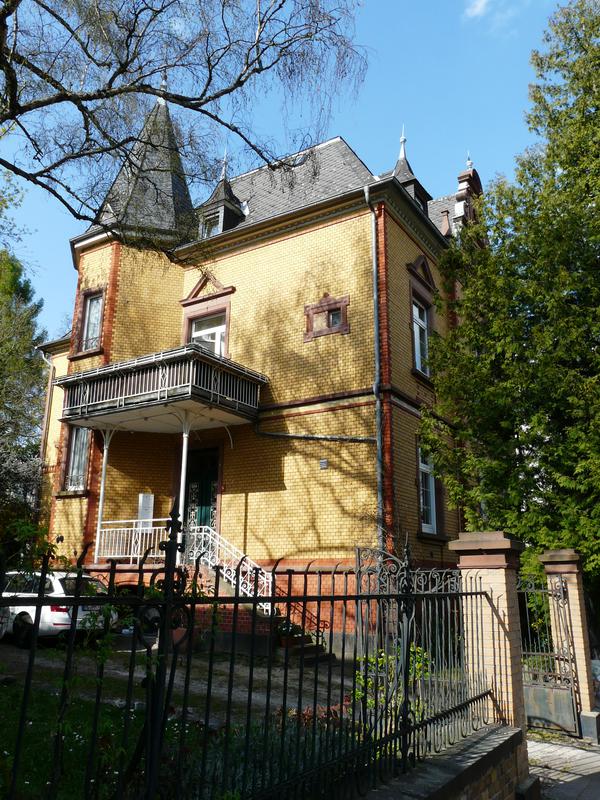 Villa Asser, errichtet 1897 für A. Asser. Der gelbliche Ziegelbau wird in typischer Weise durch Sandsteinelemente in Formen Renaissance gegliedert, die Kanten sind in origineller Weise durch rote Ziegel betont. Entsprechend den Vorlieben des späten Historismus, ist die Architektur vielgestaltig und kleinteilig gestaltet. Pittoreske Akzente setzen ein polygonaler Turm unter steilem Helm, die Gauben mit Zeltdachabschlüssen und Zierknäufen wie auch der Volutengiebel über dem Seitenrisalit. Die Anlehnung an die Formenwelt der nordischen, insbesondere niederländischen Renaissance ist typisch für das bürgerliche Bauen der Jahrhundertwendezeit. Schönes Beispiel für eine späthistoristische Vorstadtvilla, die auch in Details wie dem schmiedeeisernen Zaun zwischen Ziegelpfeilern oder dem offenbar im frühen 20. Jh. angesetzten Balkonvorbau mit Geländern im streng geometrisch aufgefassten Louis-Seize-Stil gut überliefert ist.
