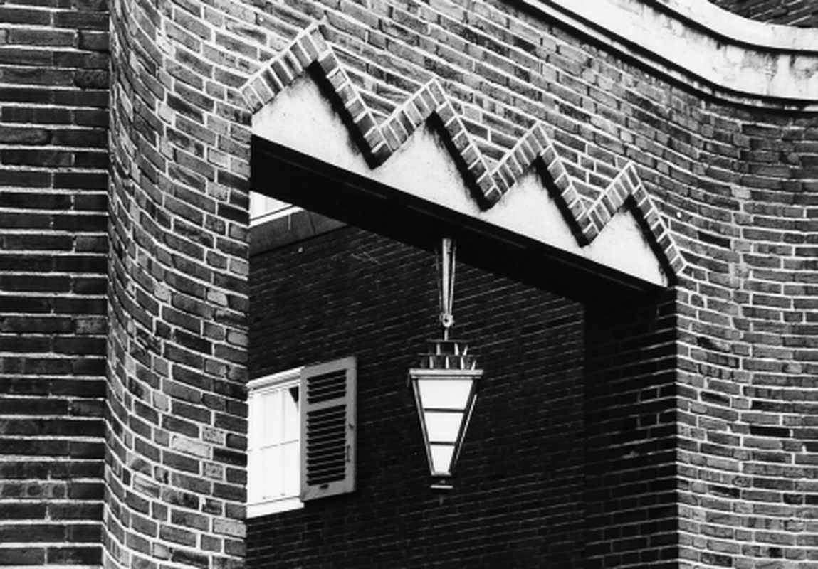 Zu den besten Details gehören die dreieckig aus der Fassade ragenden Erker und Balkone, die Schmuckdetails aus Ziegelmauerwerk im Bereich von Eingang, Dachabschluß und Torbögen, die Einfriedung aus Ziegel mit viereckigem Metallhandlauf und Kugeln, die horizontale Treppenhausverglasung, die expressionistisch-geometrisch gestalteten Wassereinläufe an der Regenrinne und die Ziegelornamente an den Tordurchfahrten.