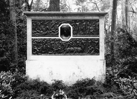 Das Grabmal besteht aus einem großen Grabstein mit zwei Bronzefriesen und einem Bronze-Halbrelief.