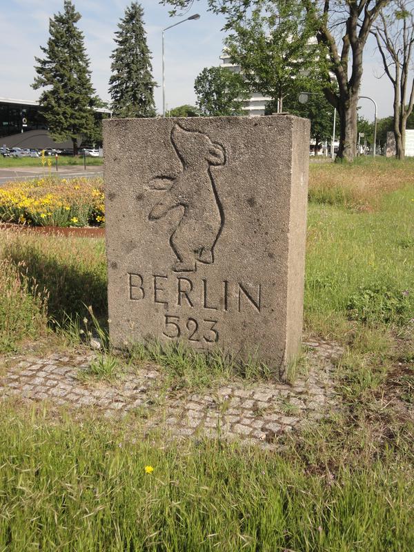 Die erste Initiative zur Aufstellung eines Berliner Meilensteins in Darmstadt wurde ab 1960 unternommen. Die Magistratsbeschlüsse vom 16.9.1960 und vom 3.3.1961 beinhalteten die Entschließung zur Aufstellung eines Meilensteins und die Festlegung seines genauen Aufstellungsortes. Die Inschrift lautet: „BERLIN 523 km“. Als Aufstellungsort wählte man treffenderweise die Berliner Allee 6 bzw. 8 in unmittelbarer der Nähe des Darmstädter Hauptbahnhofs. Zum Abschluss der „Gesamtdeutschen Woche“ am 17. Juni 1961 wurde der Meilenstein eingeweiht. Offizielle Vertreter Berlins waren nicht zugegen, diese Rolle übernahm der 2. Vorsitzende der Darmstädter Vereinigung „Bund der Berliner“ Otto Malke.